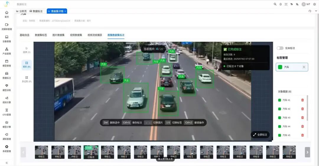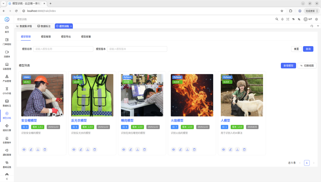 AI智能分析模块:算法能力的核心这是整个平台�?大脑”。该模块集成了YOLOv8等先进的深度学习模型,支持从数据标注、模型训练到模型部署的完整流程。用户可以基于自己的数据集训练定制化的AI模型,也可以直接使用平台提供�?0多种预训练模型�?