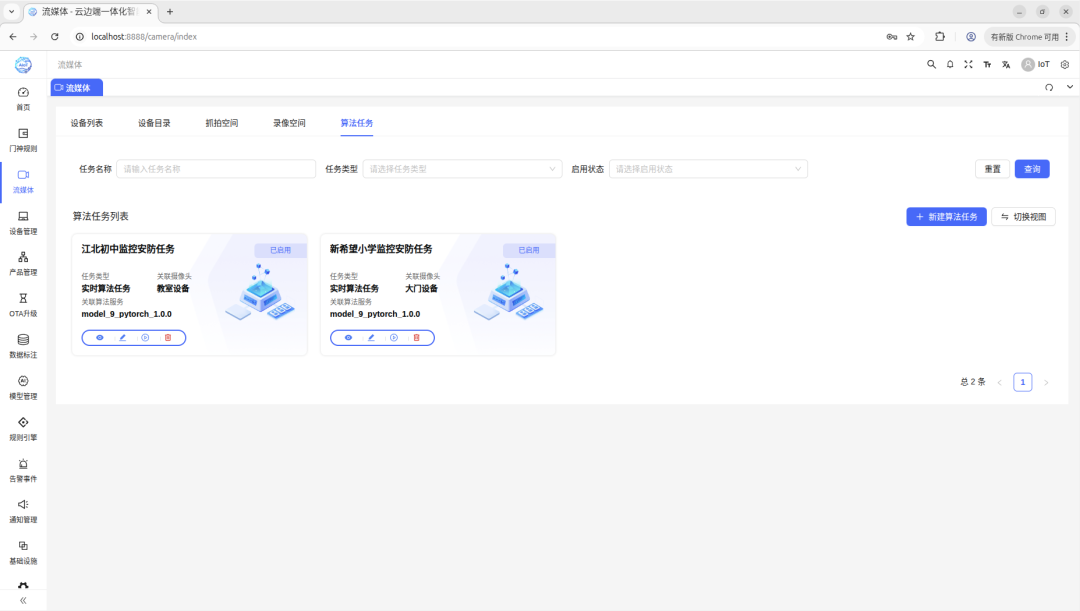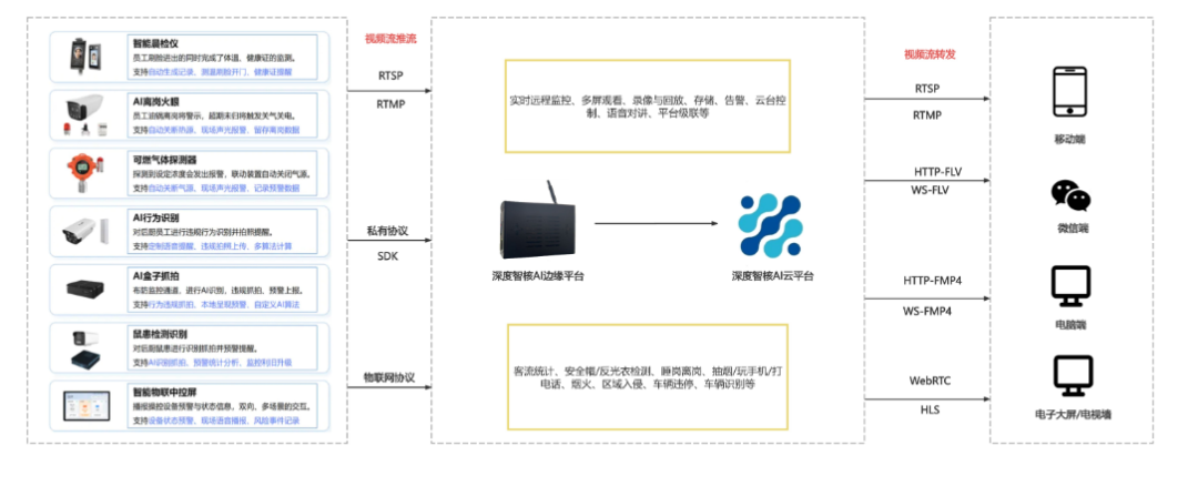 VIDEO视频处理模块:多协议流媒体支持视频处理是AIoT平台的核心能力之一。该模块支持RTSP、GB28181、RTMP等多种视频协议,实现了视频流的推拉转发。无论是电脑端、移动端还是微信小程序,都能流畅播放视频流�?