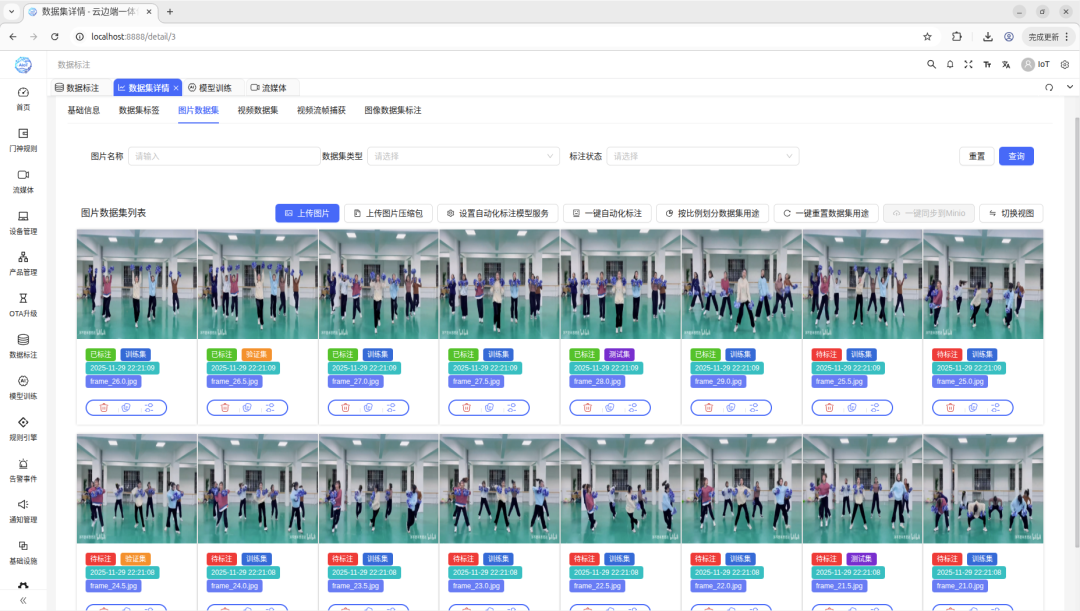 WEB前端模块:万物视觉之眼采用Vue 3和TypeScript构建的现代化前端界面,不仅提供了美观的用户体验,更重要的是实现了功能的统一管理。无论是设备配置、模型训练还是数据分析,都可以通过这个统一的入口完成。Element Plus组件库确保了界面的专业性和一致性,而WebRTC技术的集成则实现了实时音视频交互,满足监控场景的实际需求�?